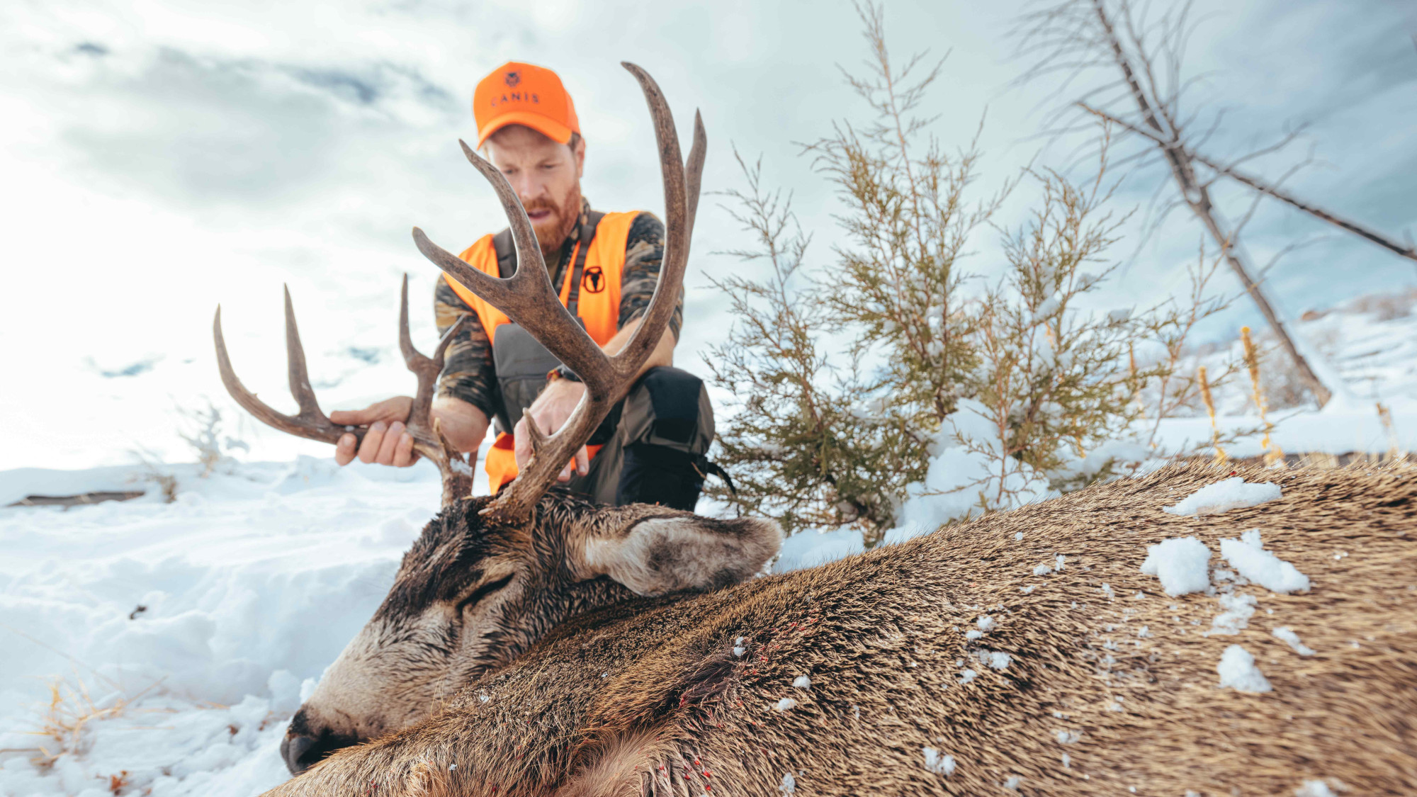 When we landed there was 8 inches of snow on the ground and the weather was calling for as much as 12-16 more inches. Being that I have to fly out to do my hunts, I have to travel light and every gear decision is a big one. That’s why I do not compromise when it comes to quality gear especially my clothing, backpack, boots, shelter and weapon systems.