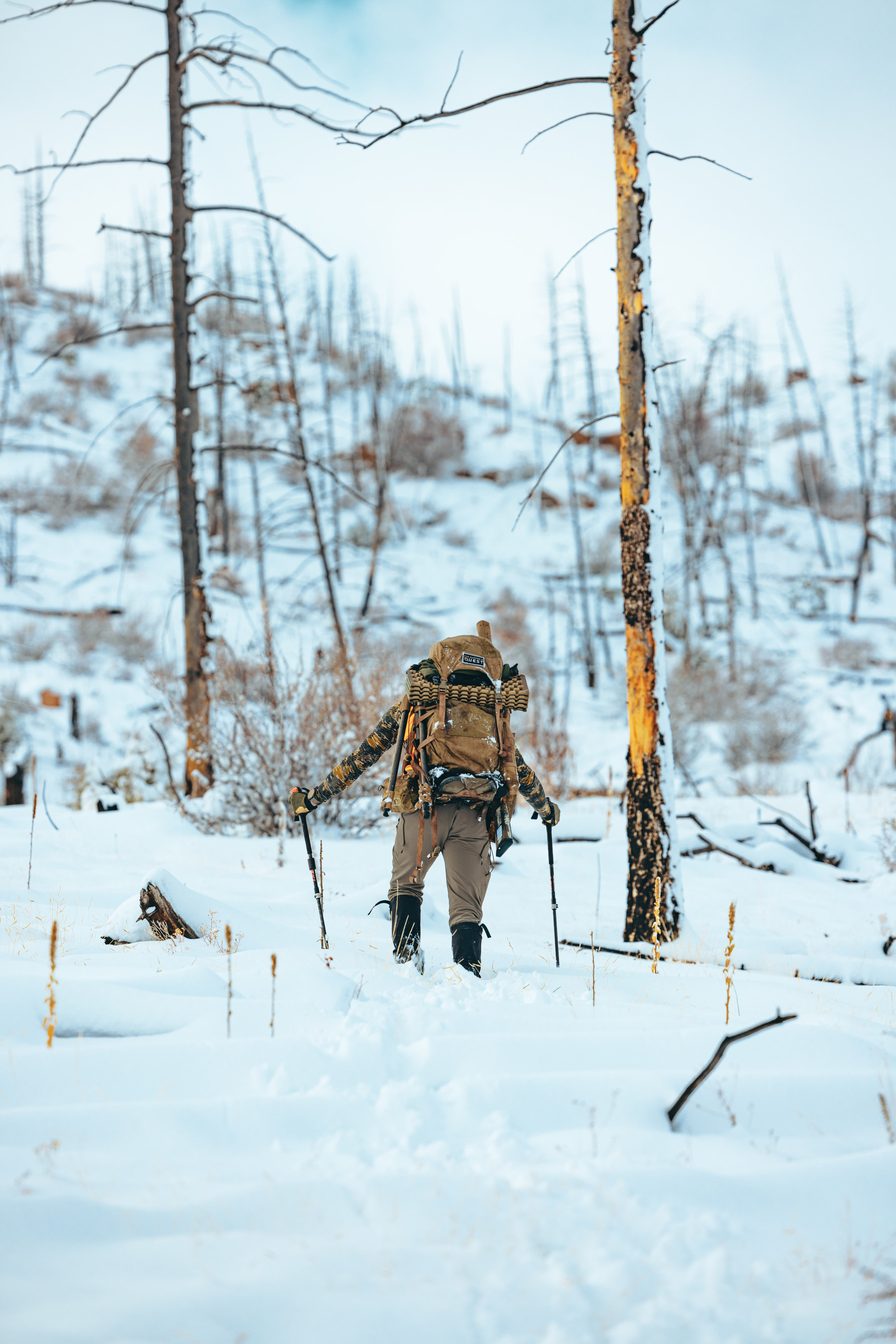We could not make it to my plan A spot with the bad weather, but I had to learned along the way to always have at least plans a-c ready to go when you hit the ground, so plan b it was. Opening morning we hiked in about 2.5 miles to my first glassing spot in some broken country with about 12 inches of snow on the ground.